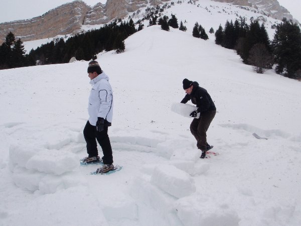 Un WE, un délire : aller à la neige, s’éloigner de la civilisation avec les raquettes aux pieds et construire un igloo pour y dormir. Petit plus : gravir un sommet le dimanche, avant de retourner en région parisienne.
