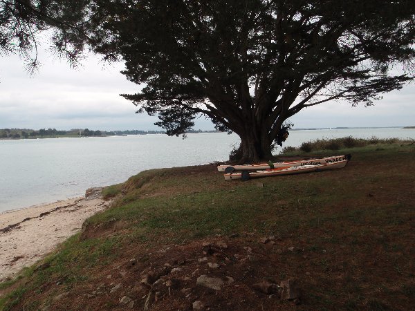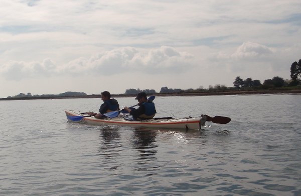 Nous nous éloignons ensuite des côtes pour rejoindre l’île aux Moines. Tout se passe bien, même si le kayakiste dans le mono-place se fatigue plus vite que les deux autres.