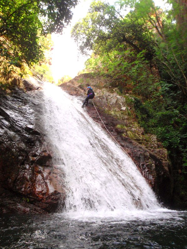 Descente d’une cascade en rappel. Ça toboggue aussi !