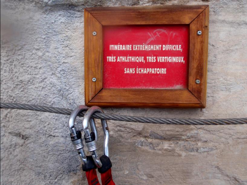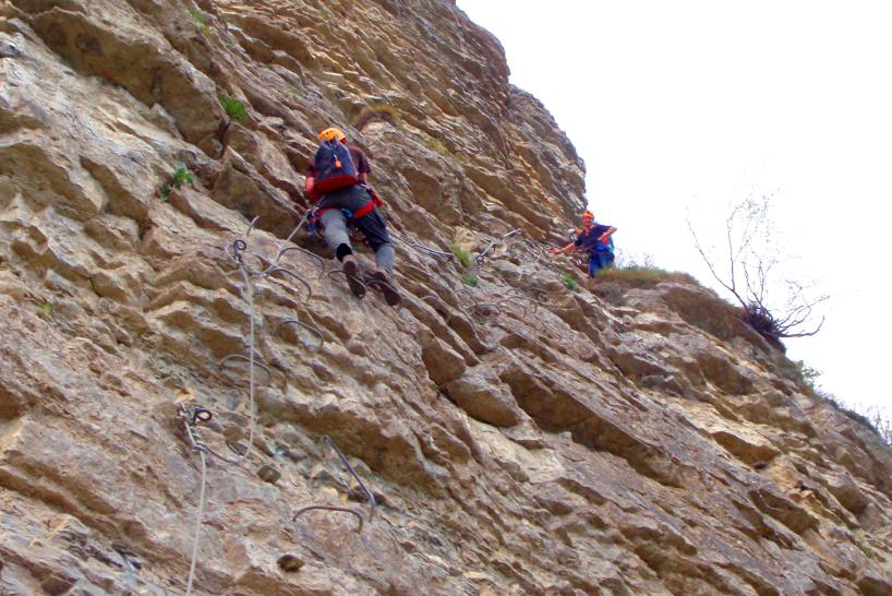 C’est une randonnée du vertige, avec des passages d’escalade sur roche ou barreaux métalliques, pendant laquelle le grimpeur est relié en permanence à une ligne de vie (un câble en acier qui court le long de toute la voie) à l’aide d’une longe.