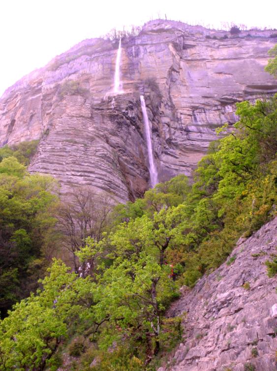 Nous arrivons à un embranchement : partie difficile à gauche, partie facile à droite, qui passe à 3 mètres du pied d’une cascade.
